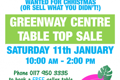 It’s time for the monthly Greenway Centre Table Top sale. This Saturday 11th January come on round and browse locally made gifts as well as bric a brac stalls. Relax Read More …