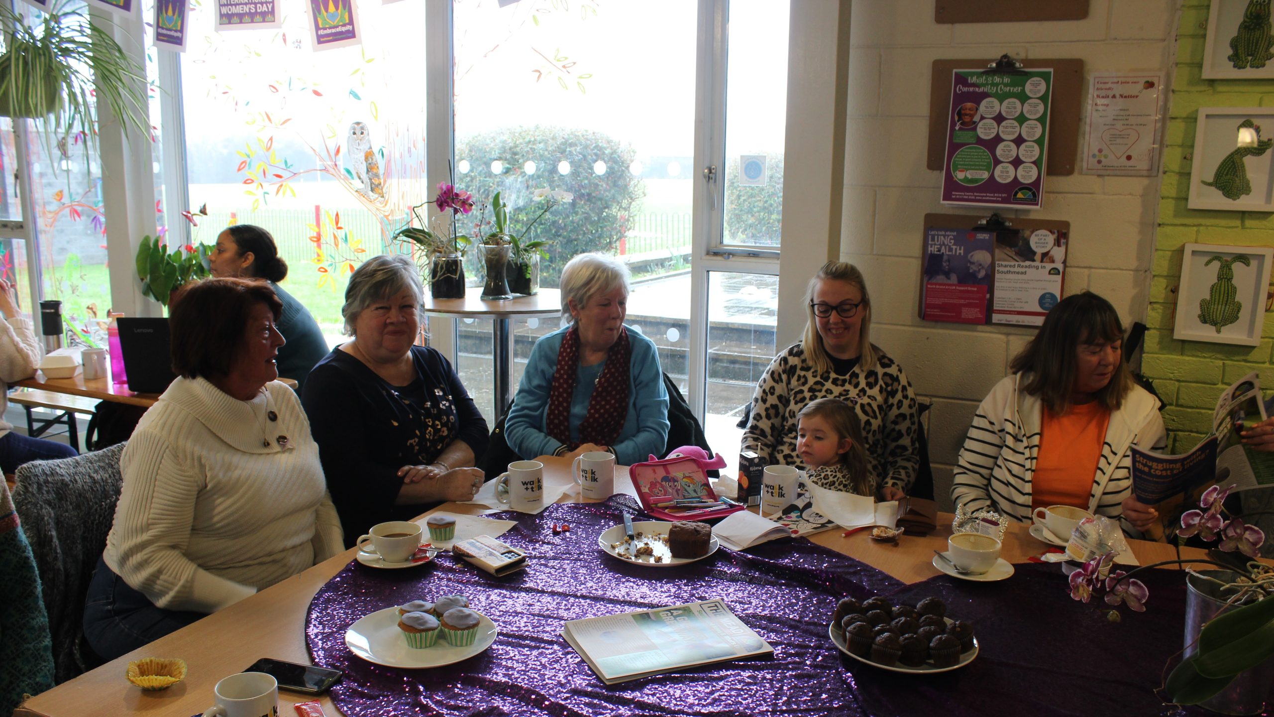 Our Thursday community coffee morning was the main focus for our #IWD23 at Greenway. With cuppas and cakes we gathered together to acknowledge the wonder of women and to dedicate our celebration to a very special community Wonder Woman – Kathy Glover, who recently died. We raised our cuppas to Kathy and remembered her as a sister of all our souls – a real Southmead Soul Sister.